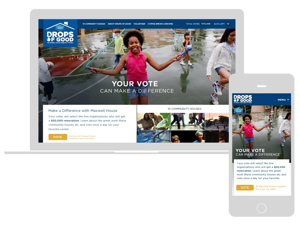 Maxwell House selected 10 community centers who were doing great work. Users could learn about the centers and vote once a day for their favorite. The 5 community centers with the most votes received $50,000 renovations.